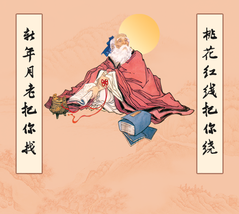 “新年月老把你找,桃花红线把你绕”。月老是我国神话传说中天上专管男女感情和婚姻的媒神,又称“月下老人”。月老主司婚姻,能够做到千里姻缘一线牵。